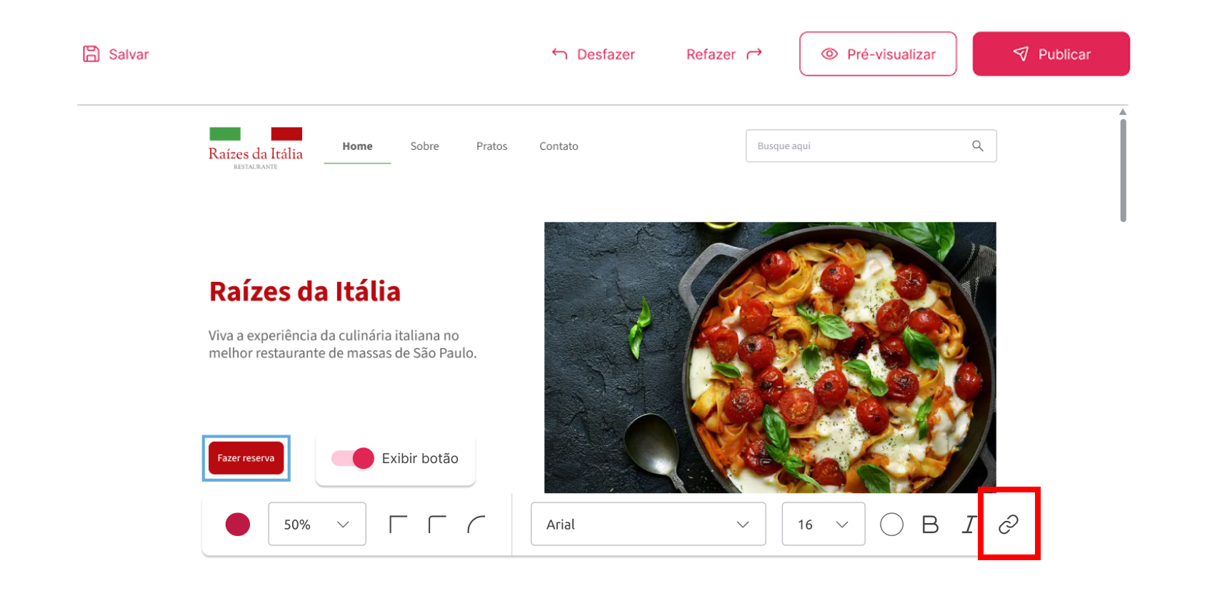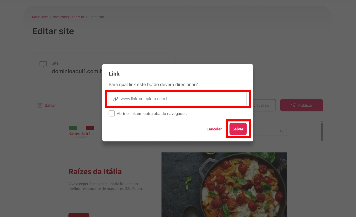 - Se preferir, você pode configurar o botão para que o link não seja aberto na mesma página que seu site. Selecione a opção “Abrir o link em outra aba do navegador”.