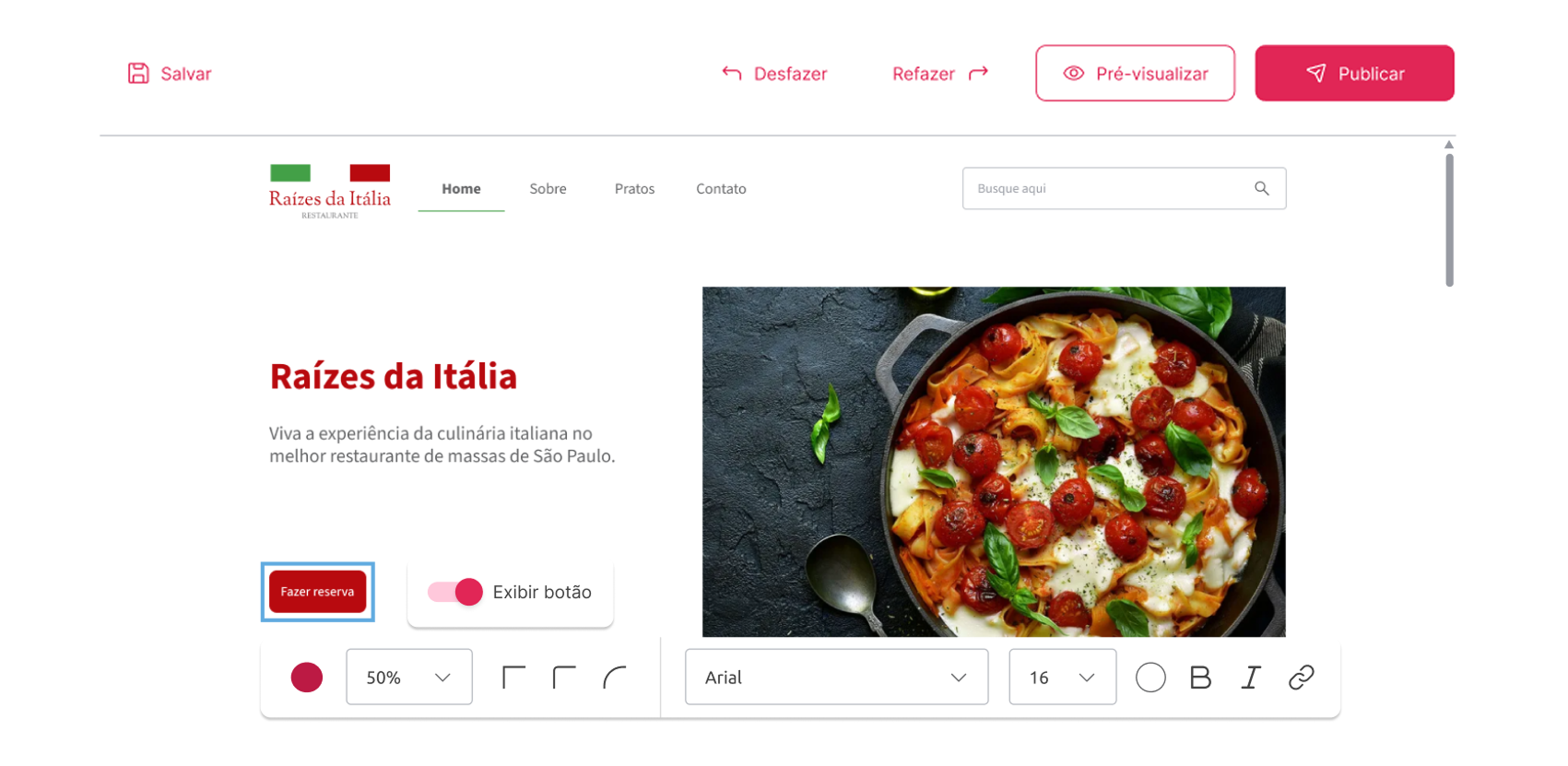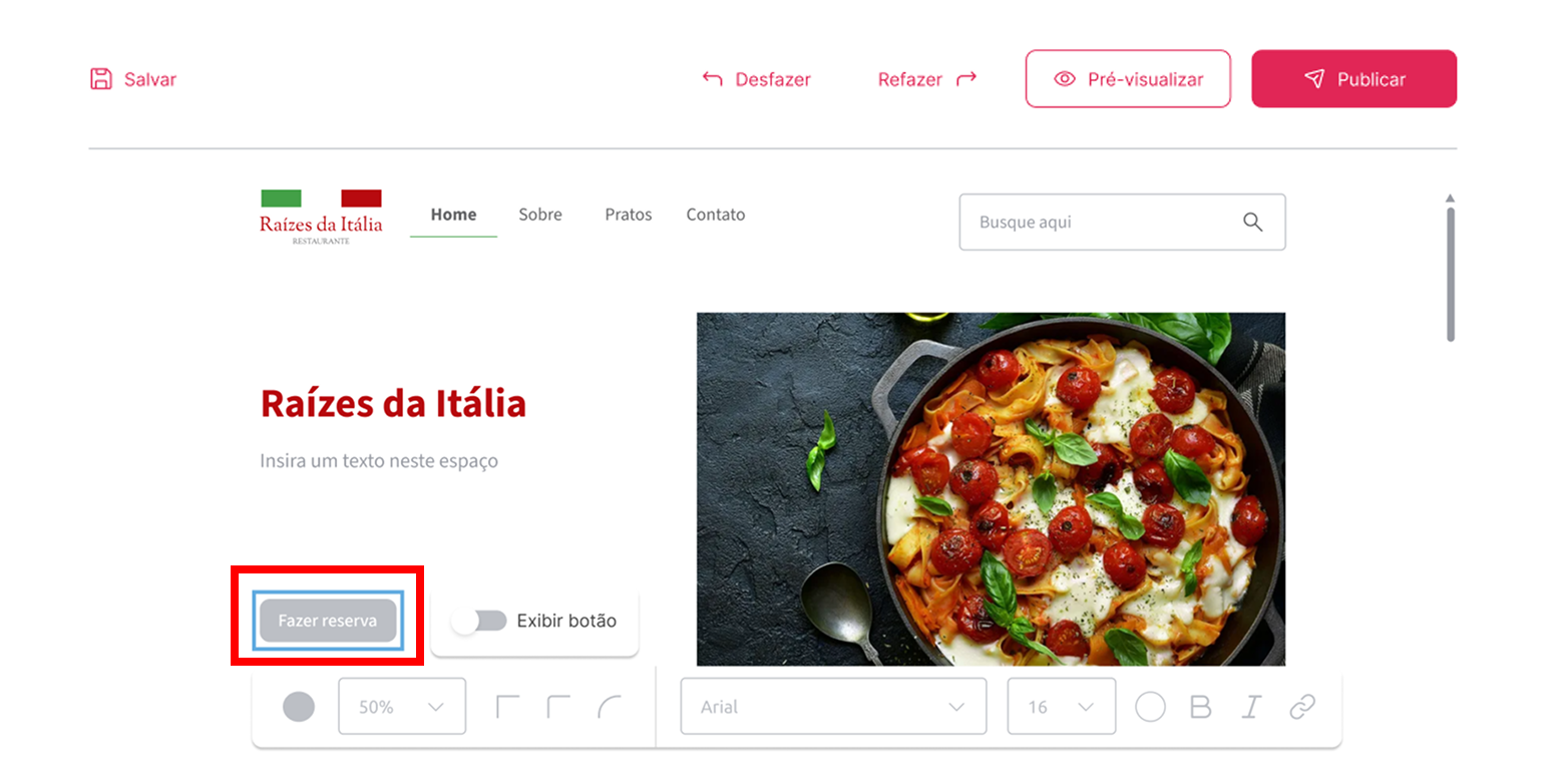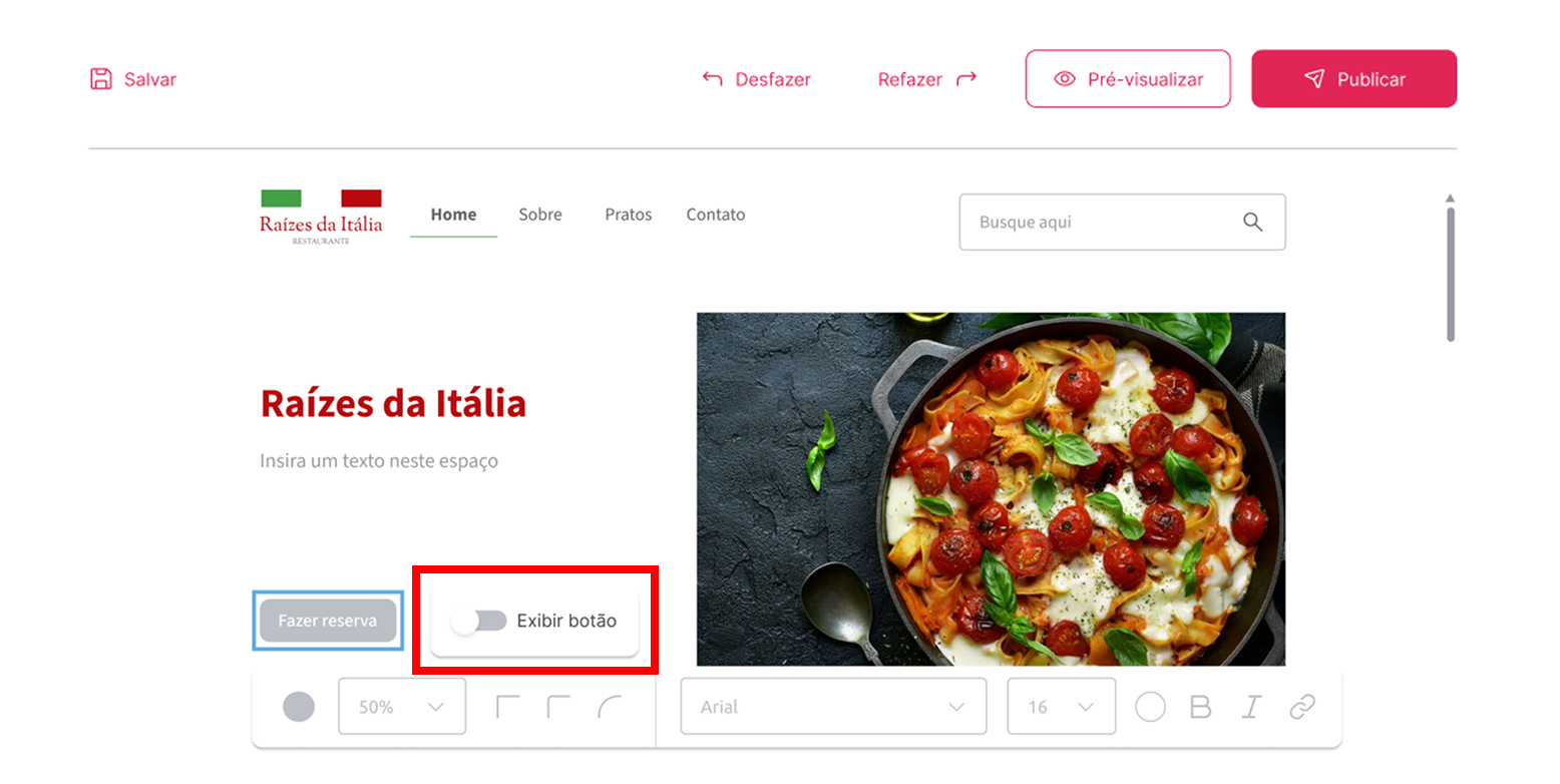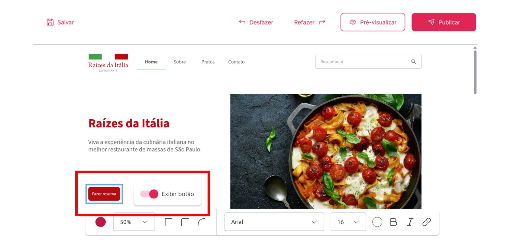 - Dentro da área de edição, clique no botão que você deseja ativar.