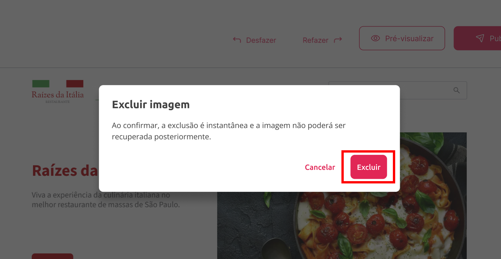 3. Como excluir imagens em um site – Criador de Sites com IA