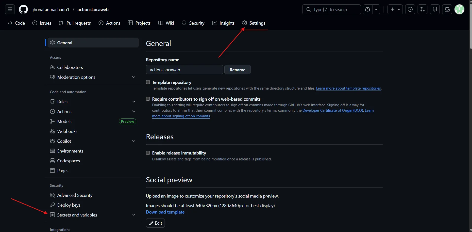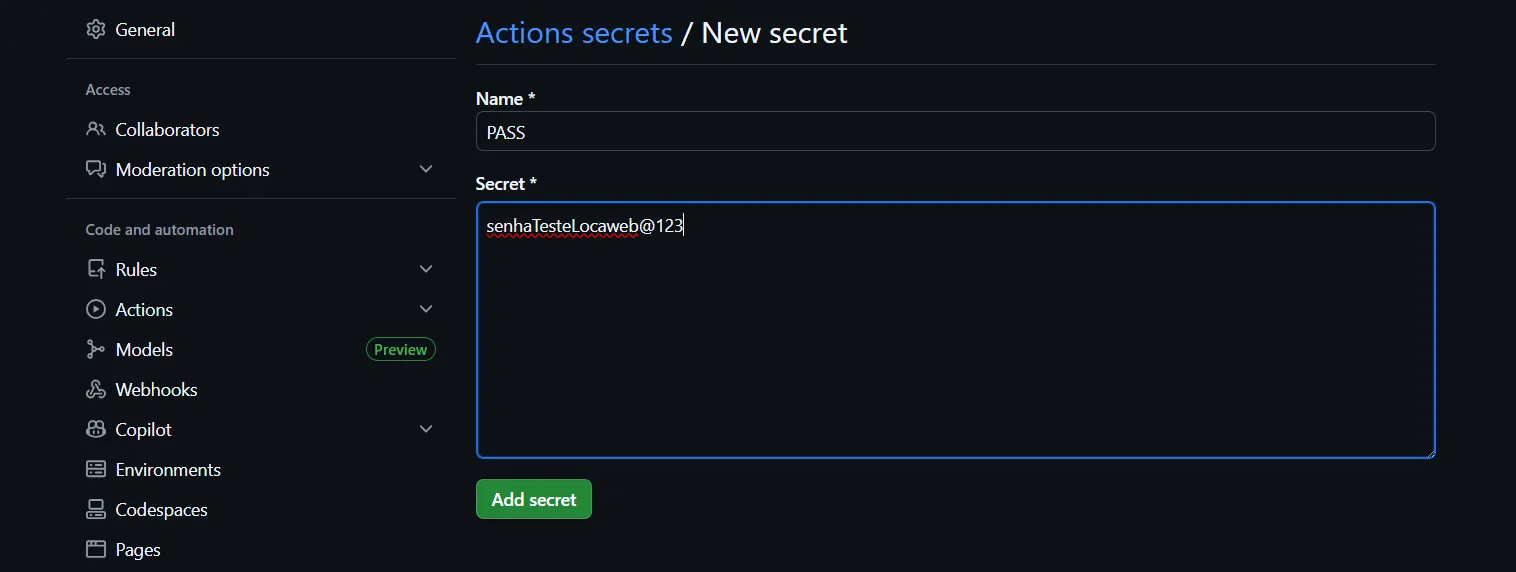 Passo 2: Configurando Secrets no seu repositório online no GitHub